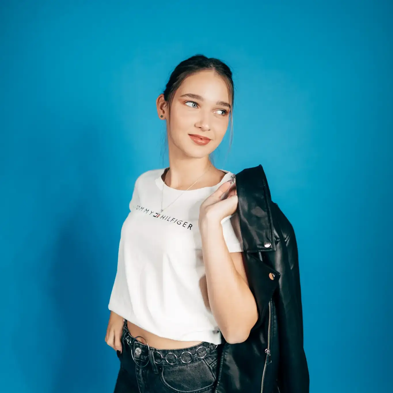 Clothing with very busy patterns, large logos, or heavy prints can easily distract attention from the person being photographed.